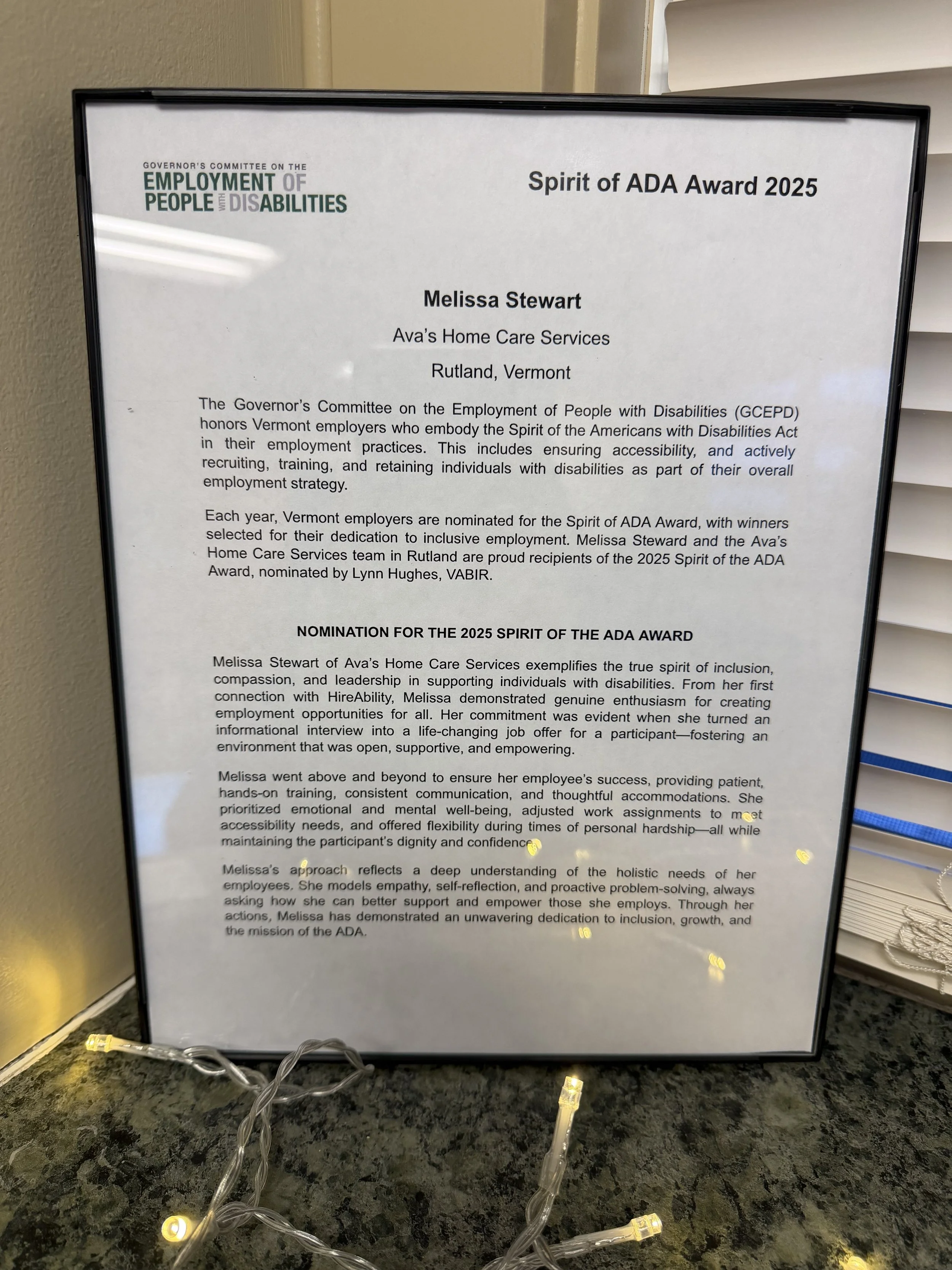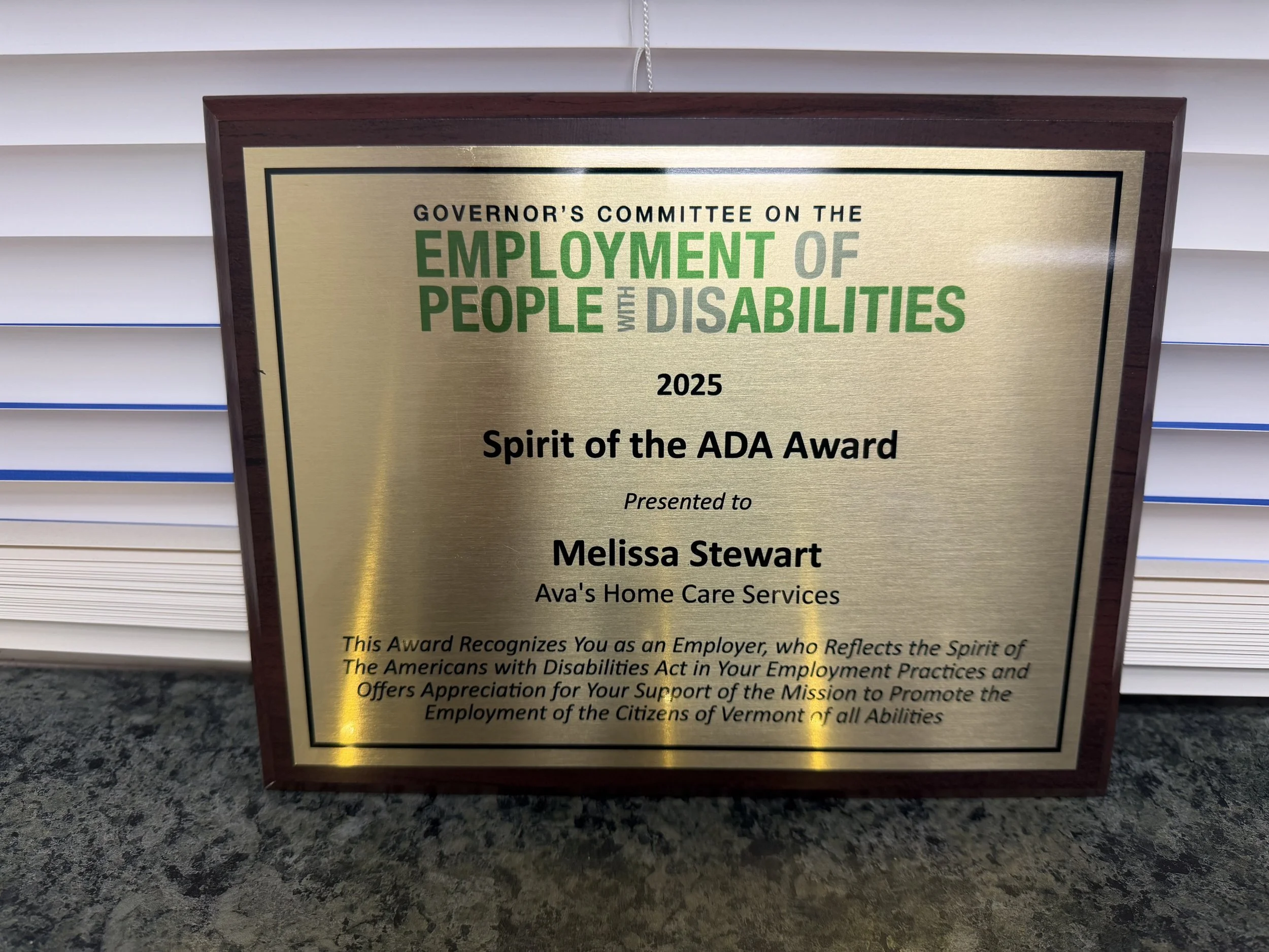 2025 Spirit of ADA Award from the Govenor’s Committee